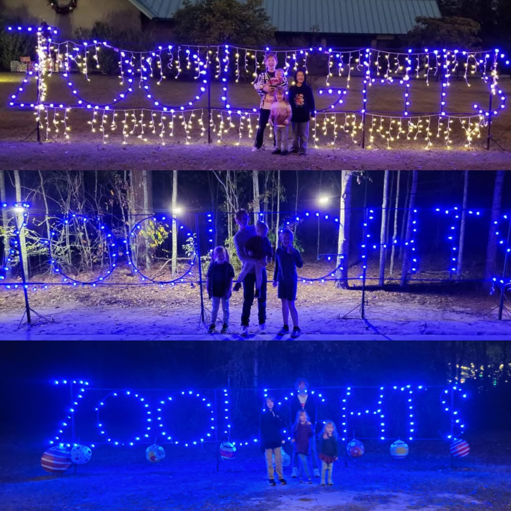 We colored, baked cookies, and enjoyed the crockpot meals Ross had made before he left for treatment. The Christmas tree wasn’t fully decorated yet, so we took some time to finish that while we waited for Ross’ return. The first night Ross was away, we continued on a tradition where we saw lights at our local zoo.